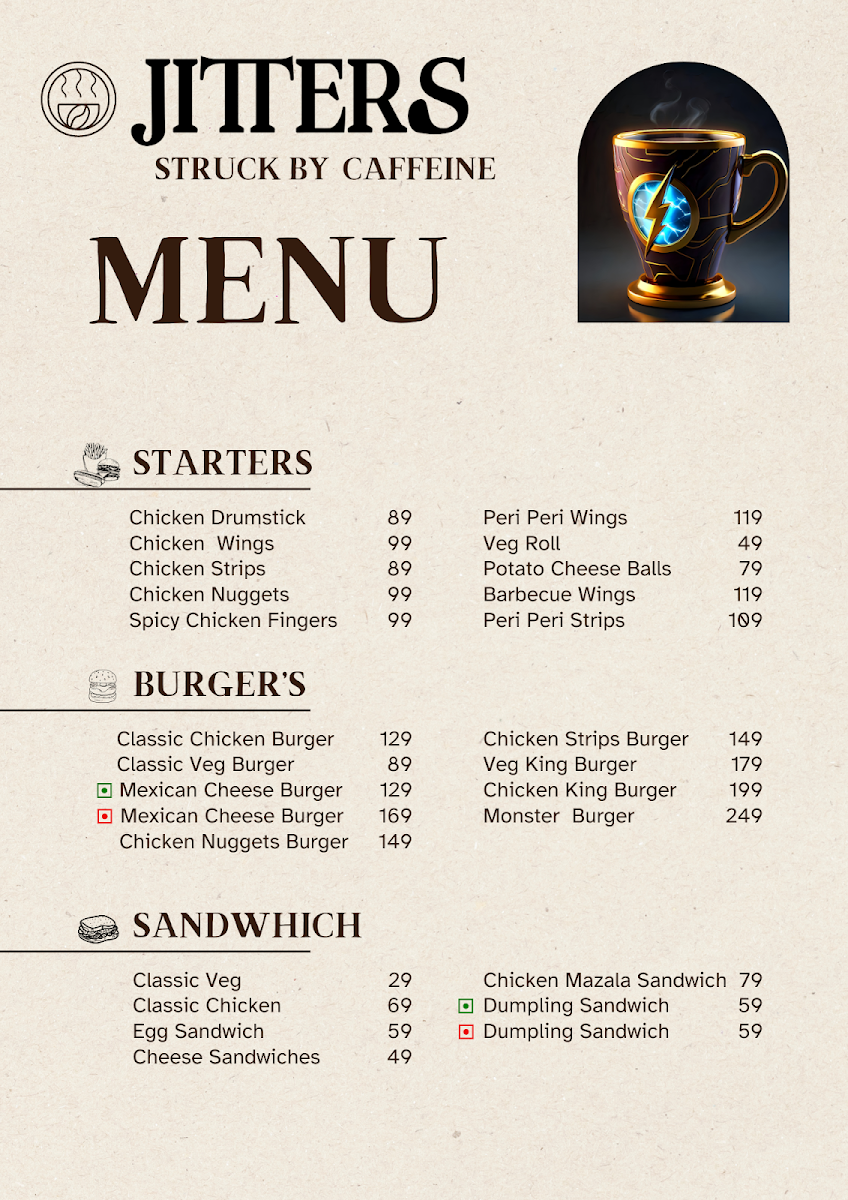 Cuisine Type: Jitters specializes in a diverse range of offerings that meld comfort food with modern twists. From vibrant mojitos to hearty ramen, the café takes your taste buds on a vibrant journey.